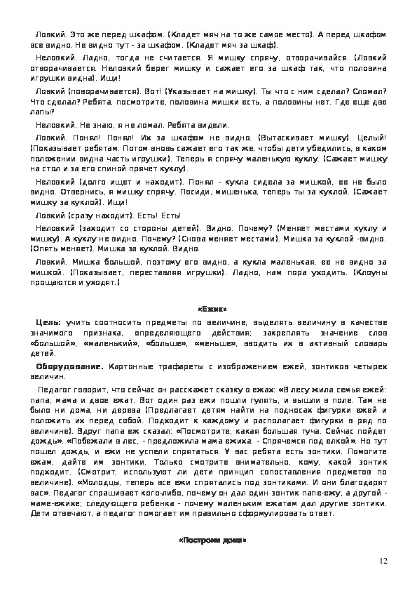 12Цель: учить зрительно соотносить величину предметов и проверять свой выбор