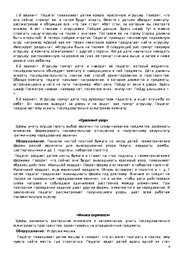 ориентирами служат геометрические формы, пластмассовая фигурка зайчика