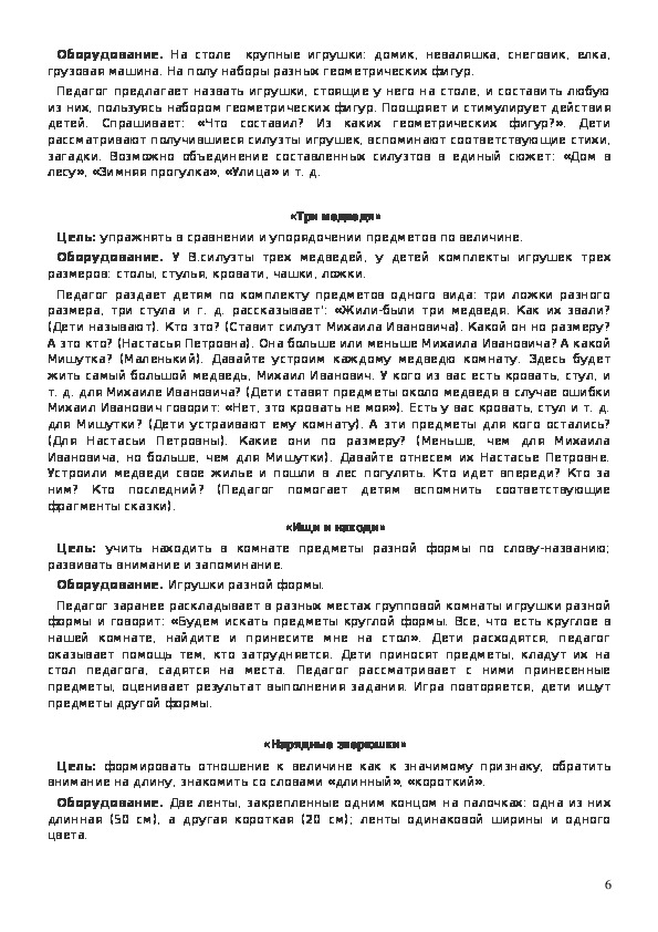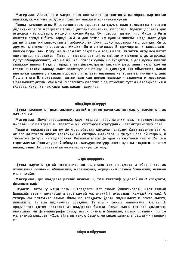 Цель: учить соотносить предметы по величине, выделять величину в качестве