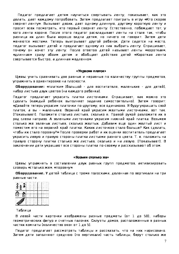 дидактического материала (разноцветные ленточки, полоски). Педагог достает две