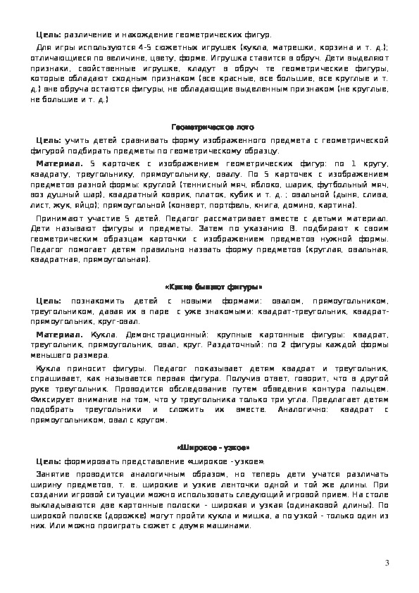 Материал. Демонстрационный: круг, квадрат, треугольник, овал, прямоугольник,