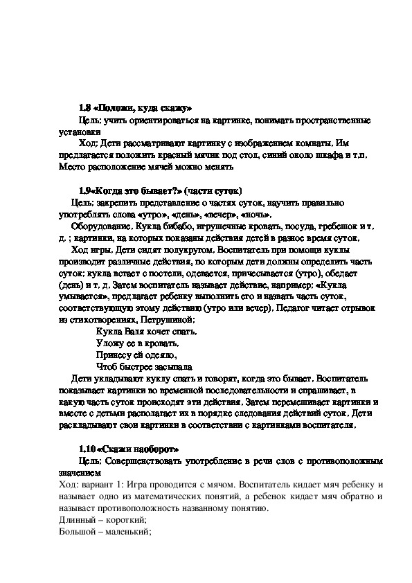 (день) и т. д. Затем воспитатель называет действие, например: «Кукла