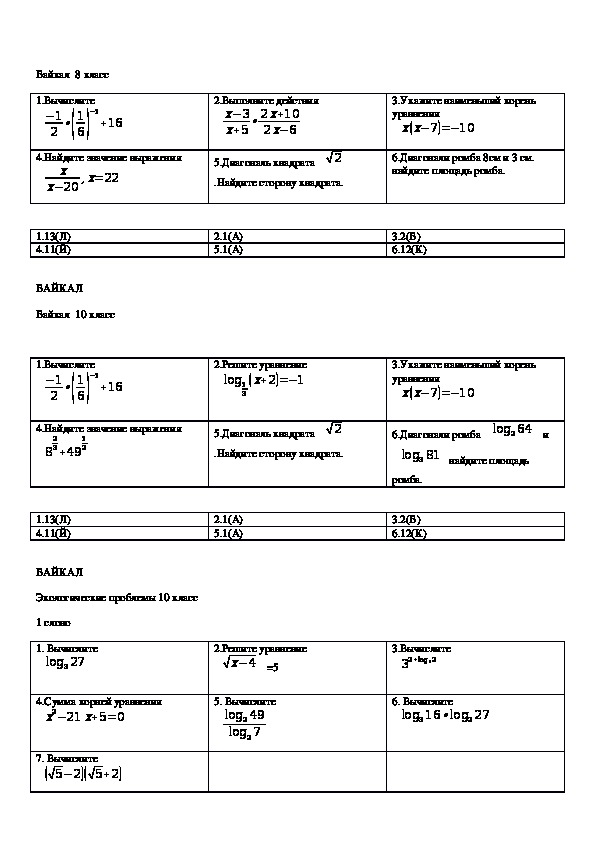 знаний учащихся 8 и 10 кл.Байкал 8 класс