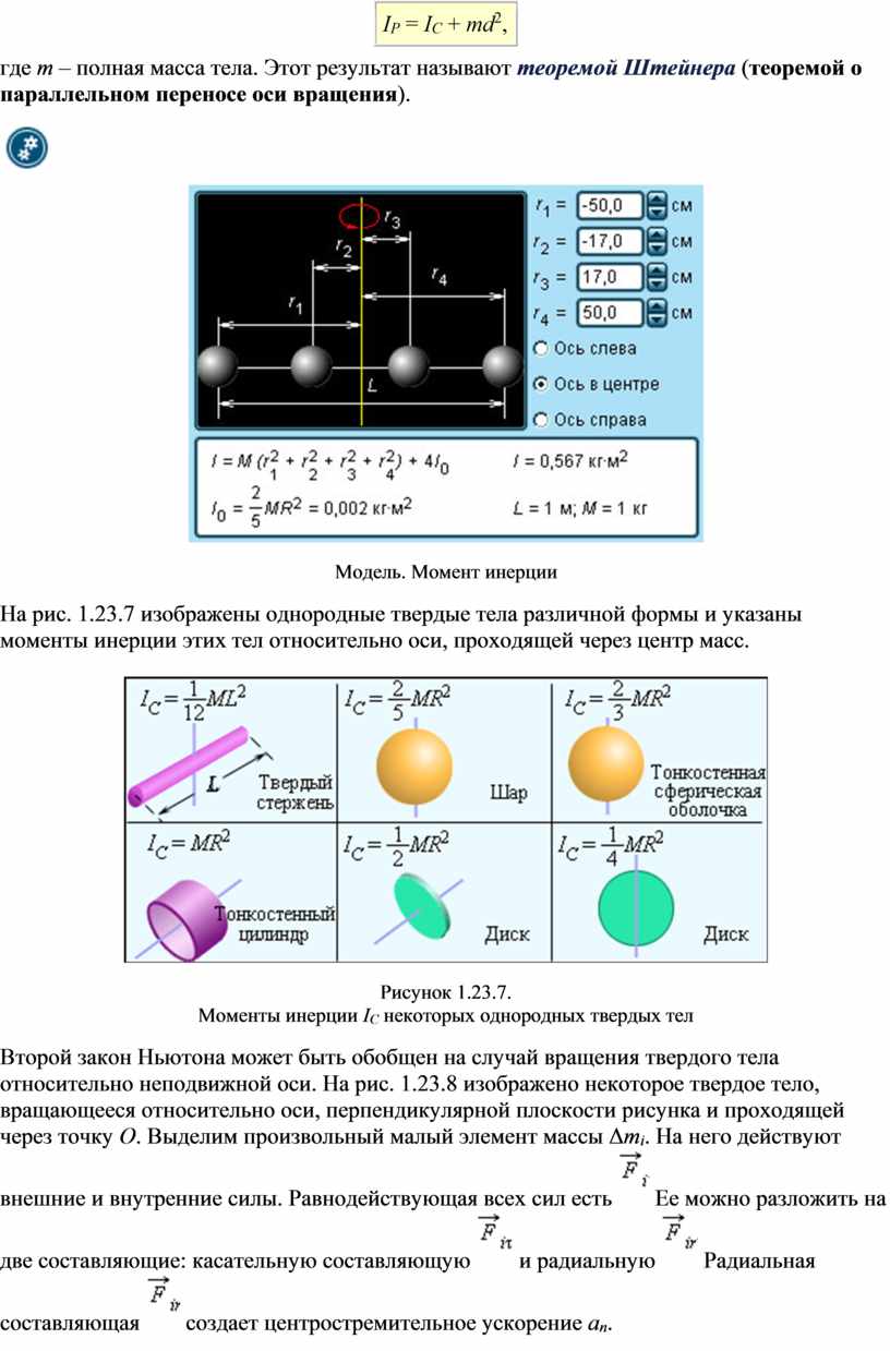 Рисунок 1.23.7. Моменты инерции IC некоторых однородных твердых тел |