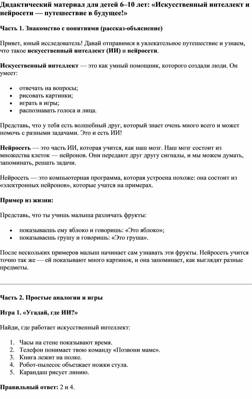 Дидактический материал для детей 6–10 лет: «Искусственный интеллект и нейросети — путешествие в будущее!»