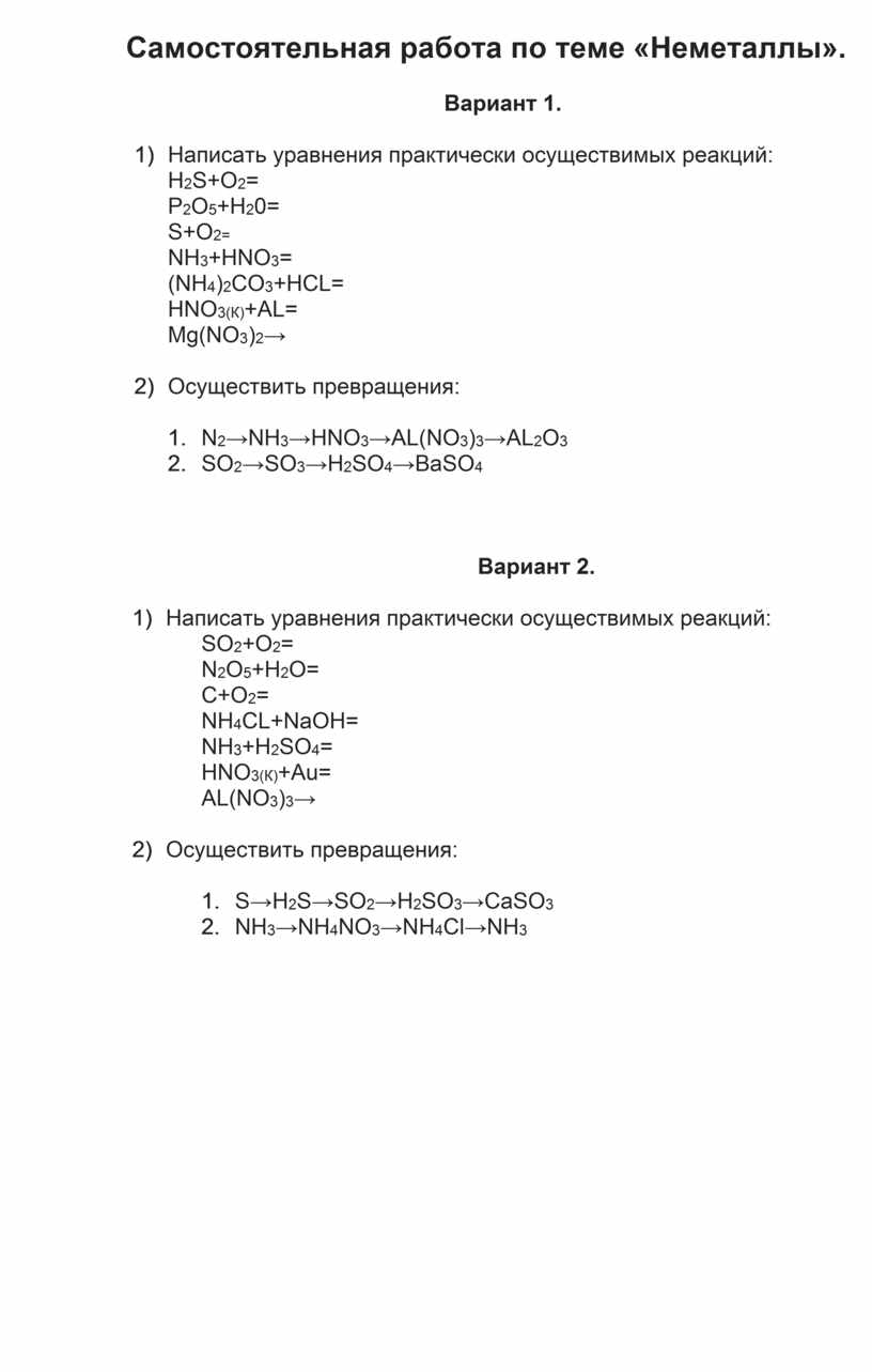 Самостоятельная работа по теме «Неметаллы».
