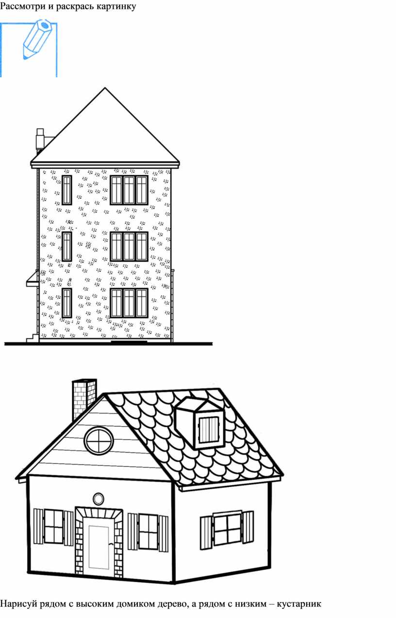 Нарисуй рядом с высоким домиком дерево, а рядом с низким – кустарник