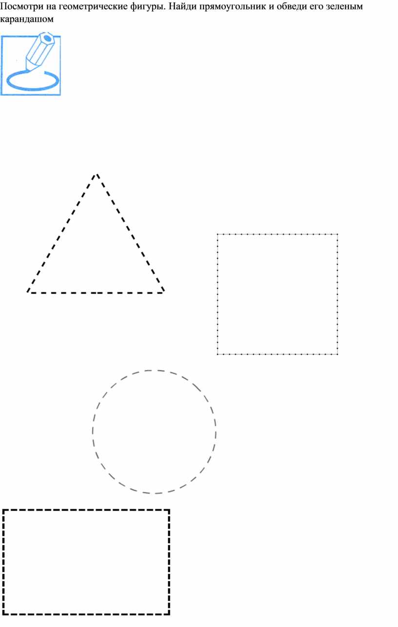 Посмотри на геометрические фигуры. Найди прямоугольник и обведи его зеленым карандашом