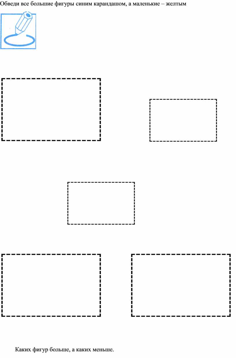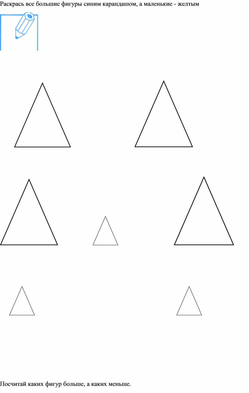 Обведи все большие фигуры синим карандашом, а маленькие – желтым