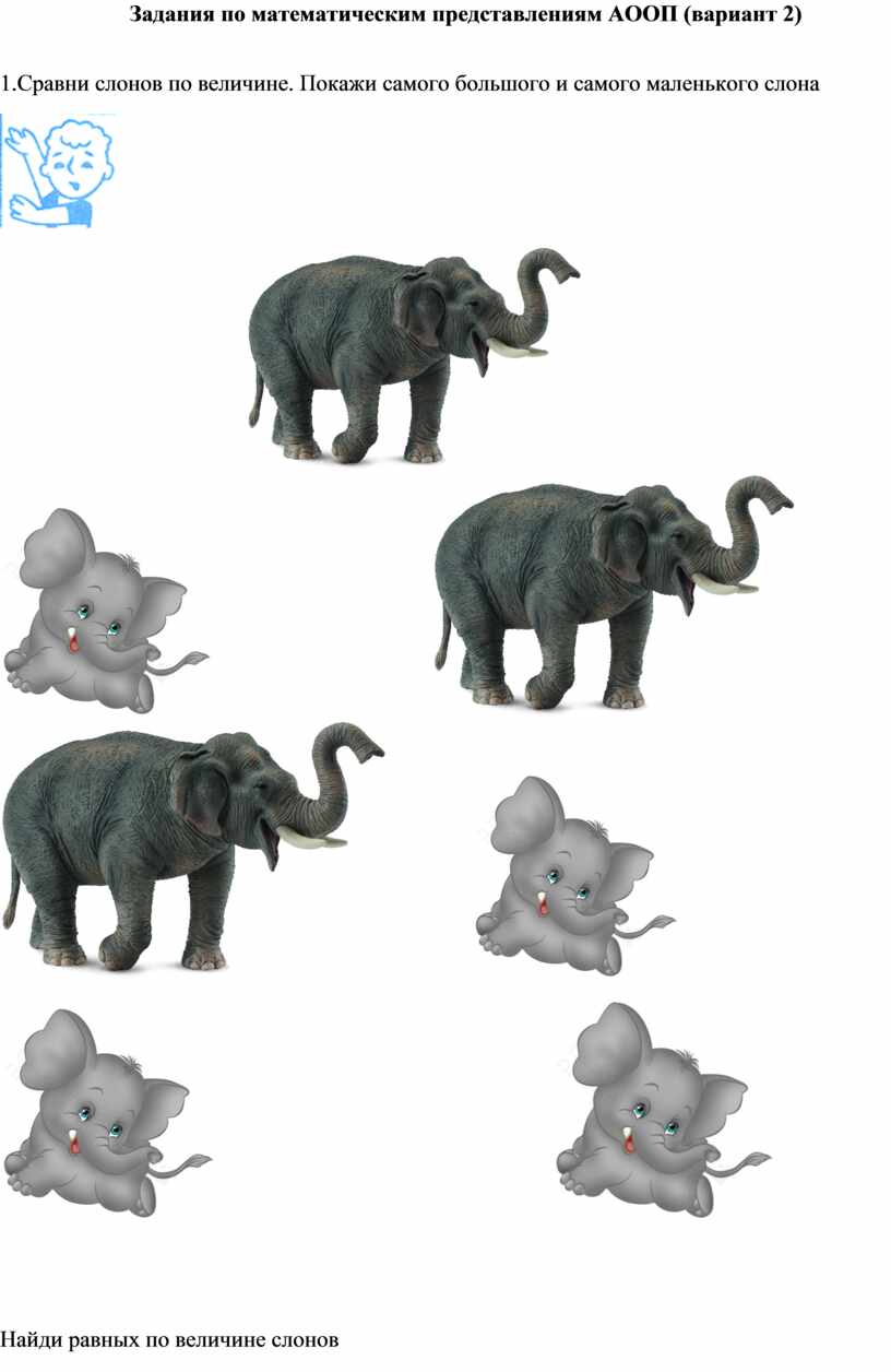 1.Сравни слонов по величине. Покажи самого большого и самого маленького слона