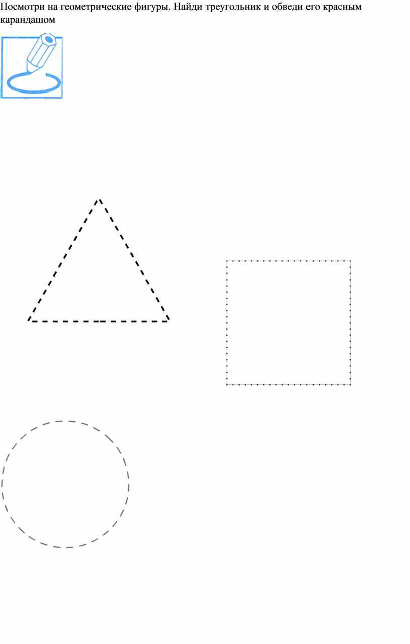 Посмотри на геометрические фигуры. Найди треугольник и обведи его красным карандашом