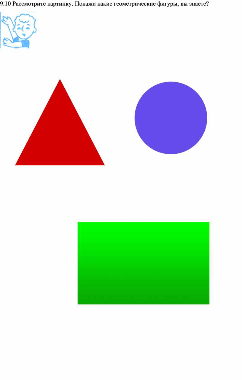 9.10 Рассмотрите картинку. Покажи какие геометрические фигуры, вы знаете?