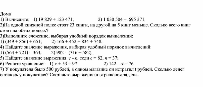 1) Вычислите: 1) 19 829 + 123 471; 2) 1 030 504 – 695 371.