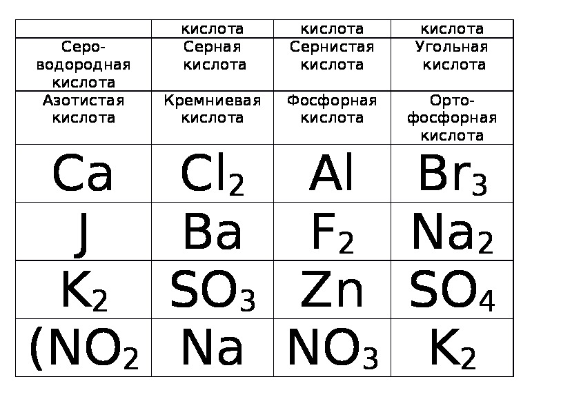 Предлагаемый дидактический материал может быть использован пи изучении базовых понятий в курсе химии 8 класса. Используется в качестве демонстрационного или раздаточного материала для составления формул основных классов неорганических соединений. Может использоваться как при изучении нового материала, так и при его закреплении. Применим для уроков химии в 8 класса в любом УМК.