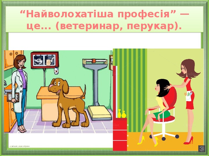 “Найволохатіша професія” — це... (ветеринар, перукар).
