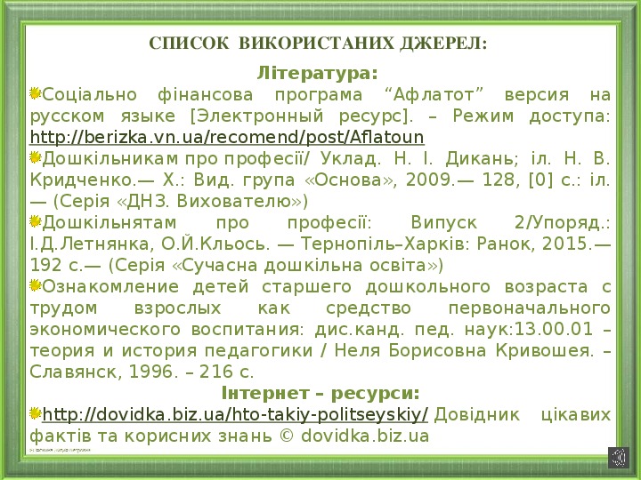 Інтернет – ресурси: