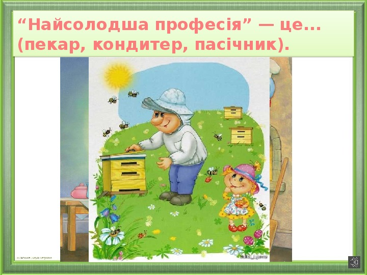 “Найсолодша професія” — це... (пекар, кондитер, пасічник).