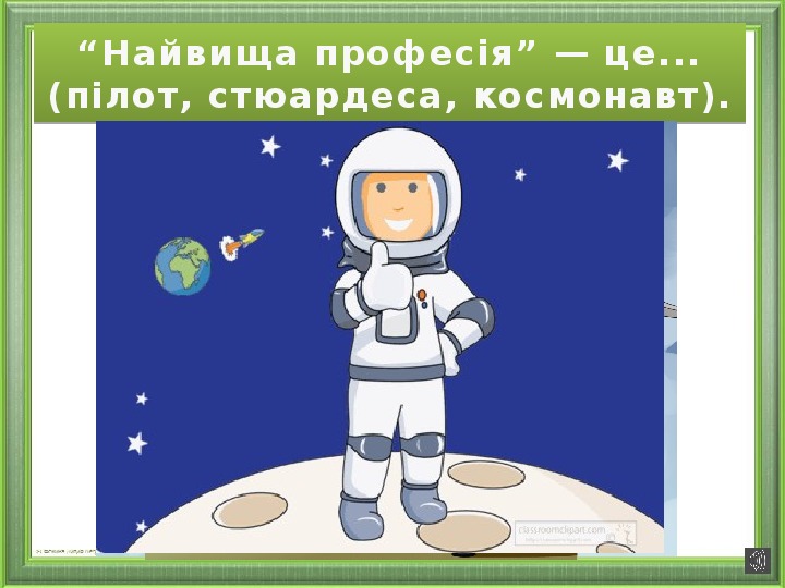 “Найвища професія” — це... (пілот, стюардеса, космонавт).