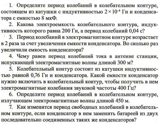1.Чему равен период собственных колебаний в контуре, если его индуктивность 2,5 Гн, а емкость 1,5 мкФ?