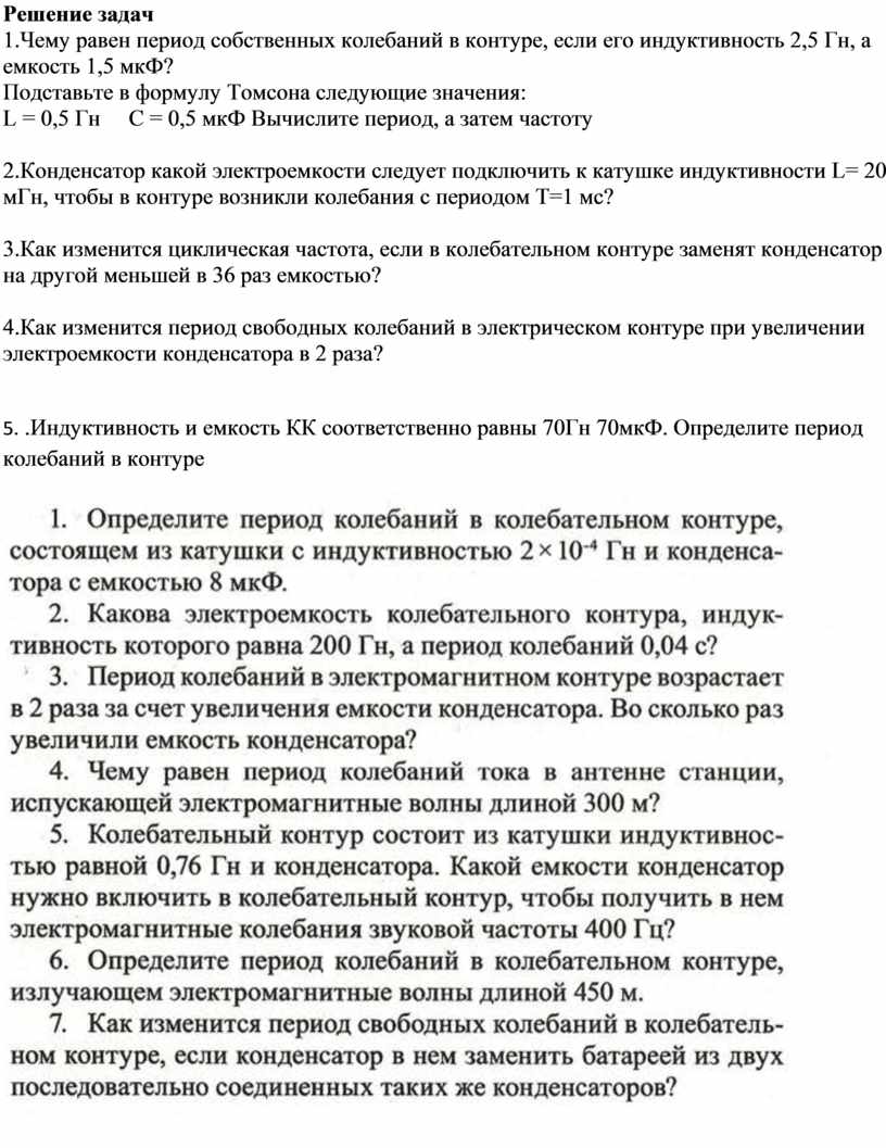 5. .Индуктивность и емкость КК соответственно равны 70Гн 70мкФ. Определите период колебаний в контуре