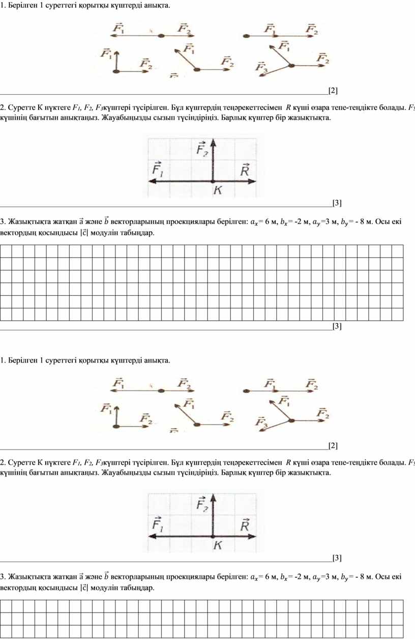 1. Берілген 1 суреттегі қорытқы күштерді анықта.