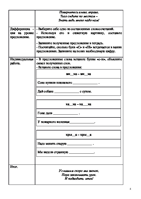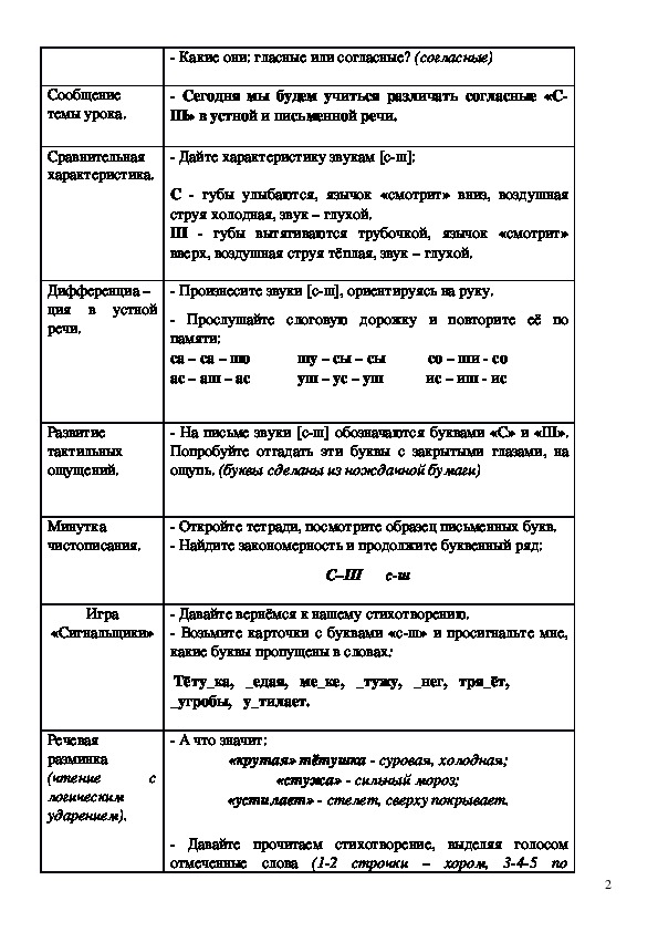 Цель: Научить детей различать согласные С и Ш в устной и письменной