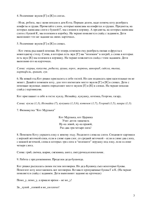 Цель: учить детей различать звуки [Г] – [К] в слогах, словах и предложениях и правильно