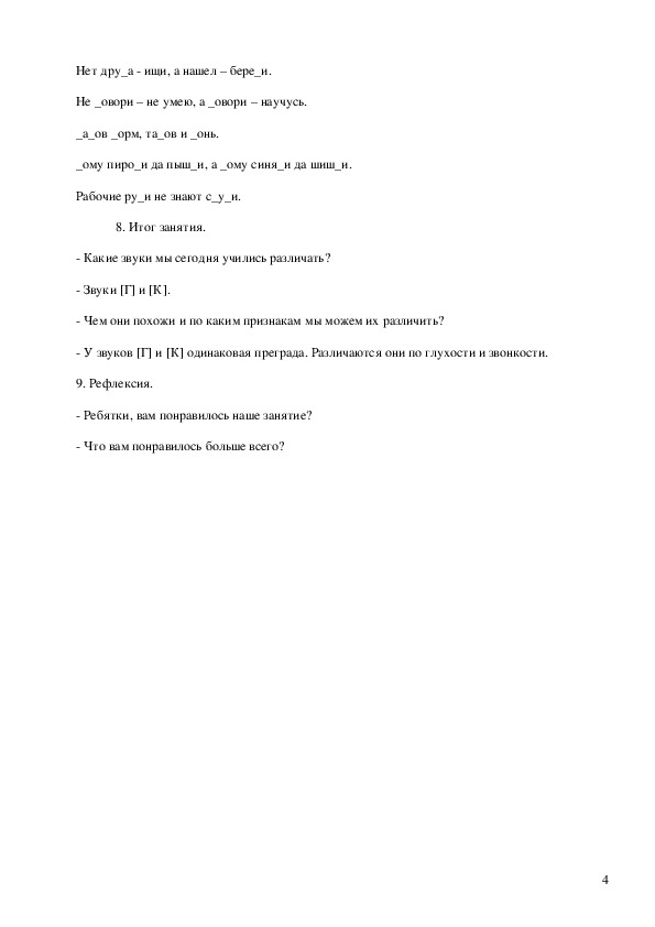 класса по теме "Дифференциация звуков [Г] – [К] в