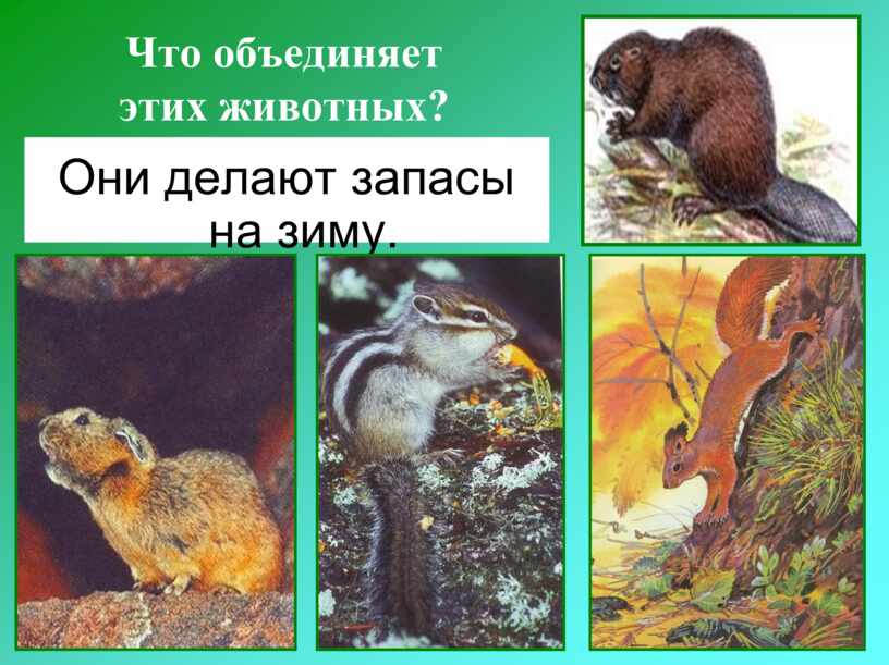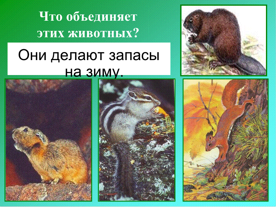 - Что объединяет этих животных? Они делают на зиму запасы.