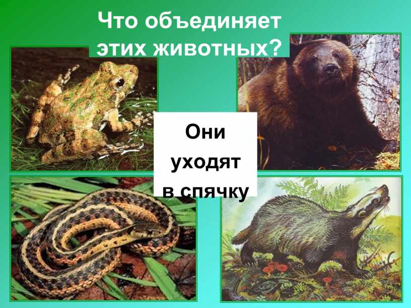 - Что объединяет этих животных? Эти животные уходят в спячку.