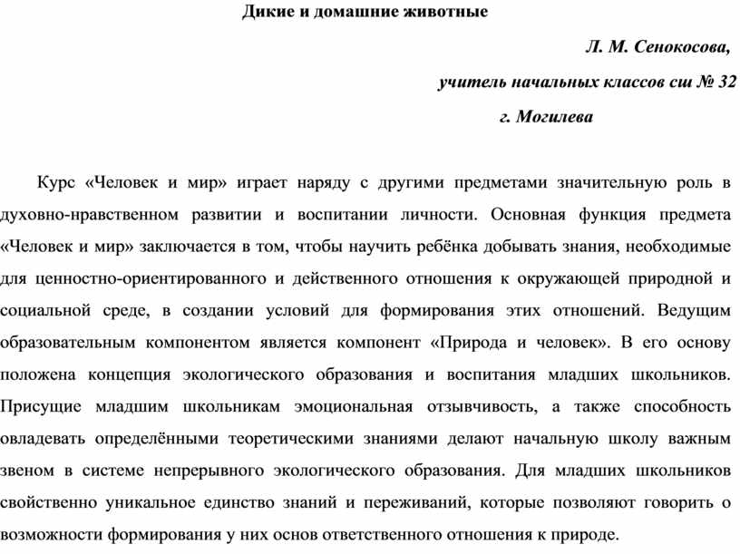 Курс «Человек и мир» играет наряду с другими предметами значительную роль в духовно-нравственном развитии и воспитании личности. Основная функция предмета «Человек и мир» заключается в том, чтобы научить ребёнка добывать знания, необходимые для ценностно-ориентированного и действенного отношения к окружающей природной и социальной среде, в создании условий для формирования этих отношений. Ведущим образовательным компонентом является компонент «Природа и человек». В его основу положена концепция экологического образования и воспитания младших школьников. Присущие младшим школьникам эмоциональная отзывчивость, а также способность овладевать определёнными теоретическими знаниями делают начальную школу важным звеном в системе непрерывного экологического образования. Для младших школьников свойственно уникальное единство знаний и переживаний, которые позволяют говорить о возможности формирования у них основ ответственного отношения к природе.