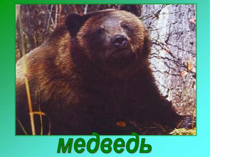 Медведь наедается: ест насекомых, ягоды, траву, чтобы накопить побольше жира. Жир – это запас пищи на зиму. Ищет надёжное убежище, где можно поспать до весны, утепляет его листьями и ветками. (Слайд)