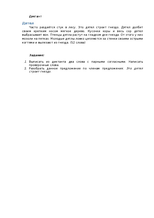 2. Разобрать данное предложение по членам предложения: Это дятел