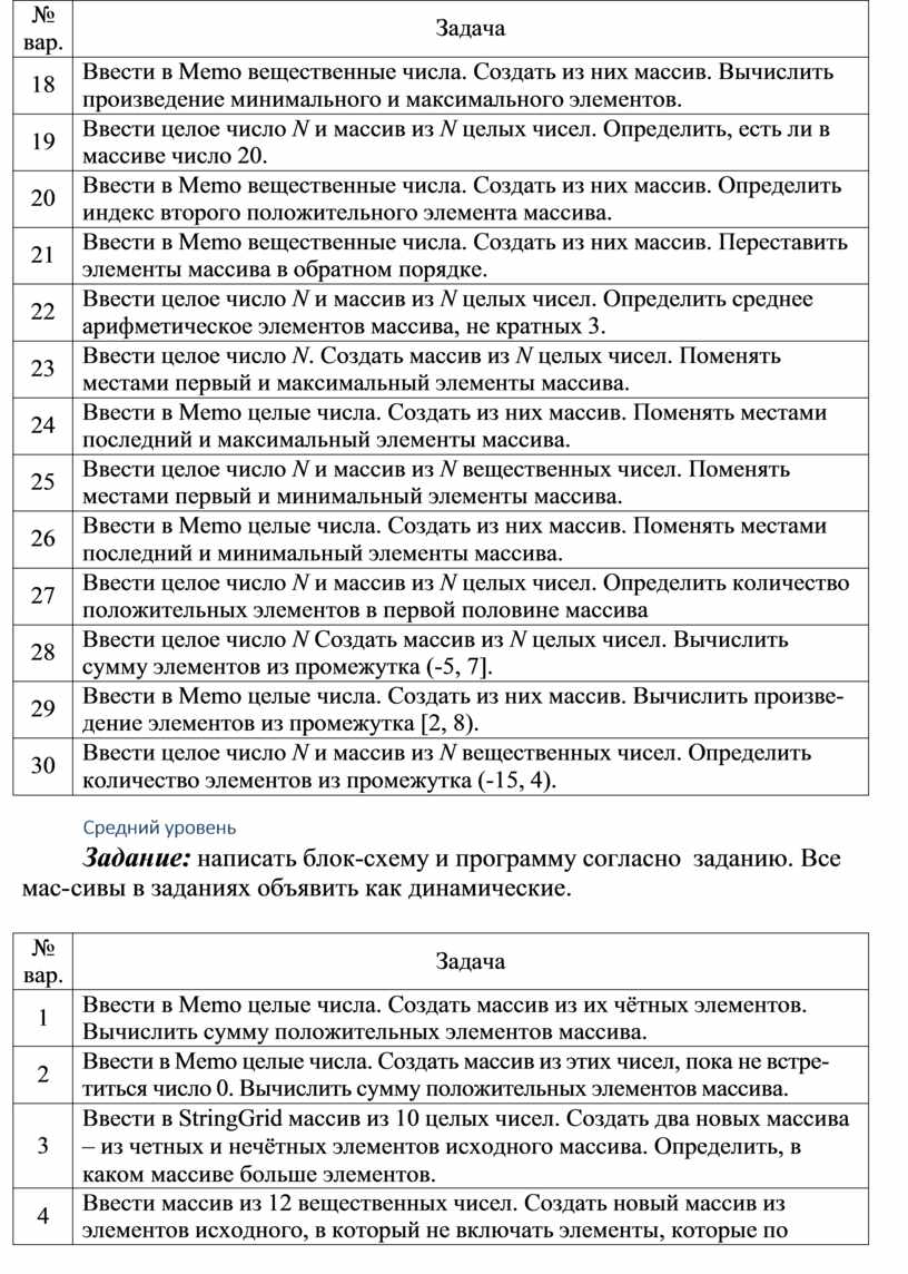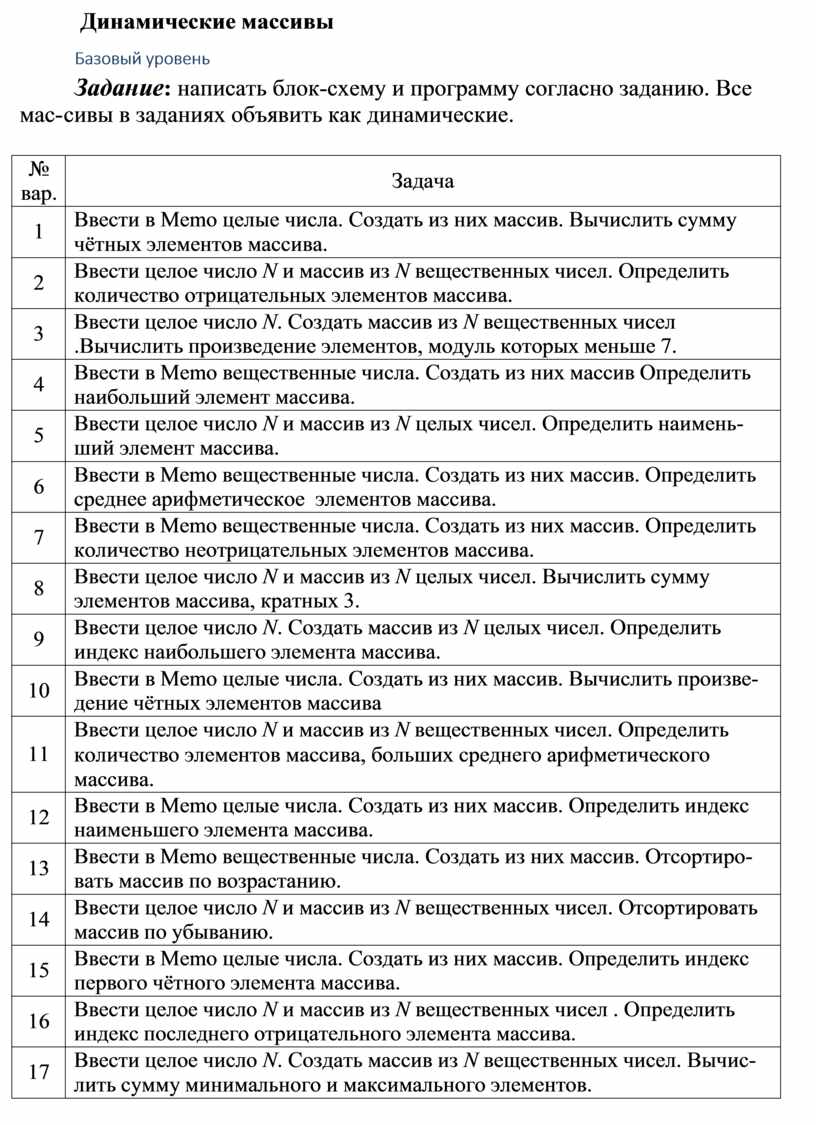 Задание: написать блок-схему и программу согласно заданию. Все мас- сивы в заданиях объявить как динамические.