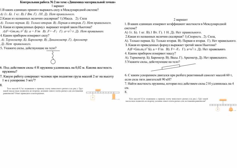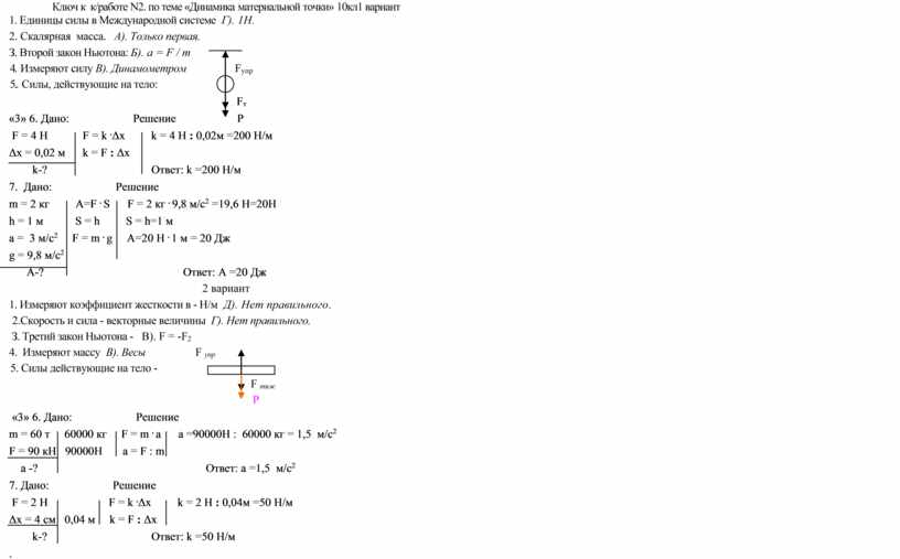Ключ к к/работе N2. по теме «Динамика материальной точки» 10кл1 вариант