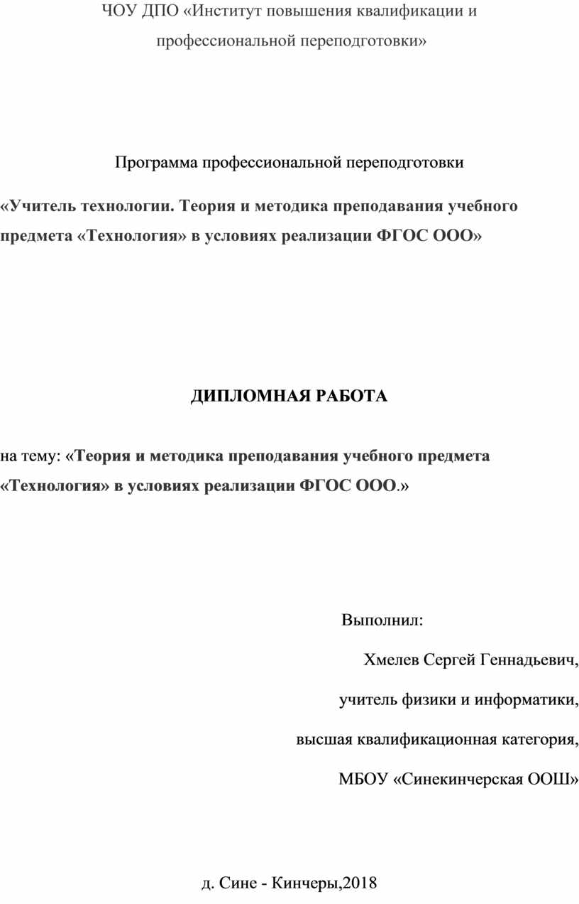на тему: «Теория и методика преподавания учебного предмета «Технология» в условиях реализации ФГОС ООО.»