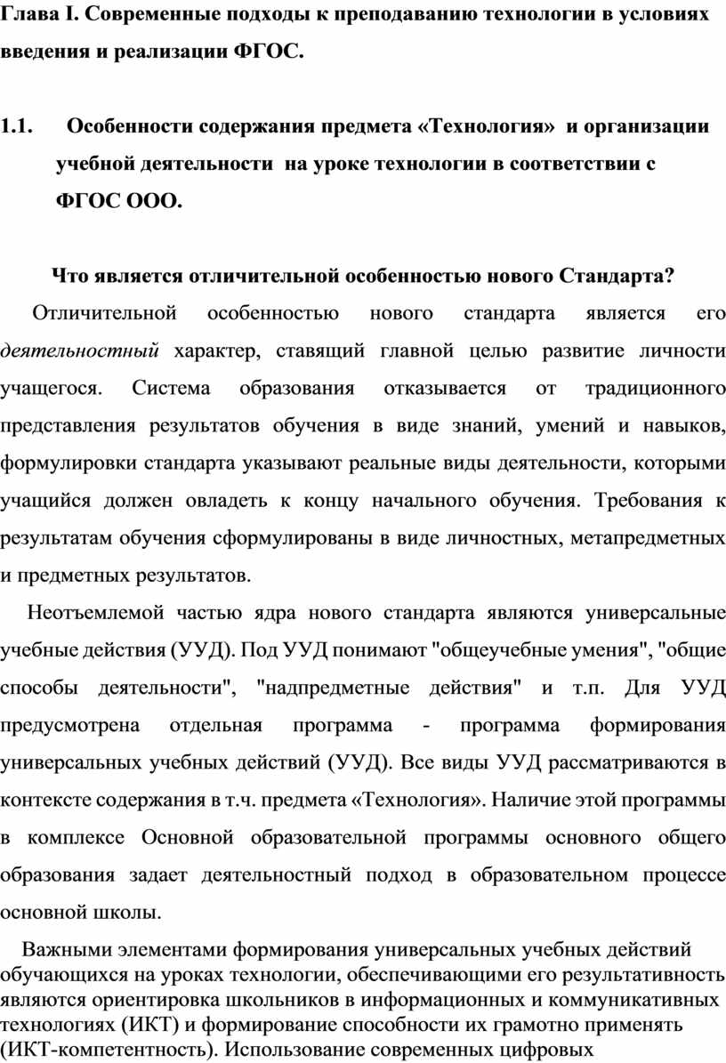 Глава I. Современные подходы к преподаванию технологии в условиях введения и реализации ФГОС.