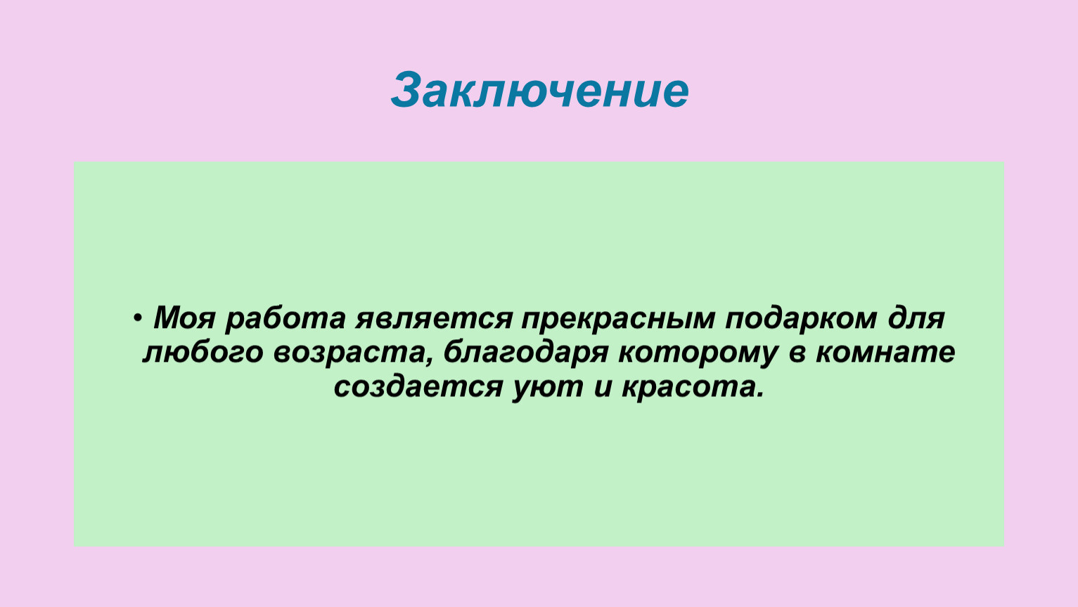 Моя работа является прекрасным подарком для любого возраста, благодаря которому в комнате создается уют и красота.