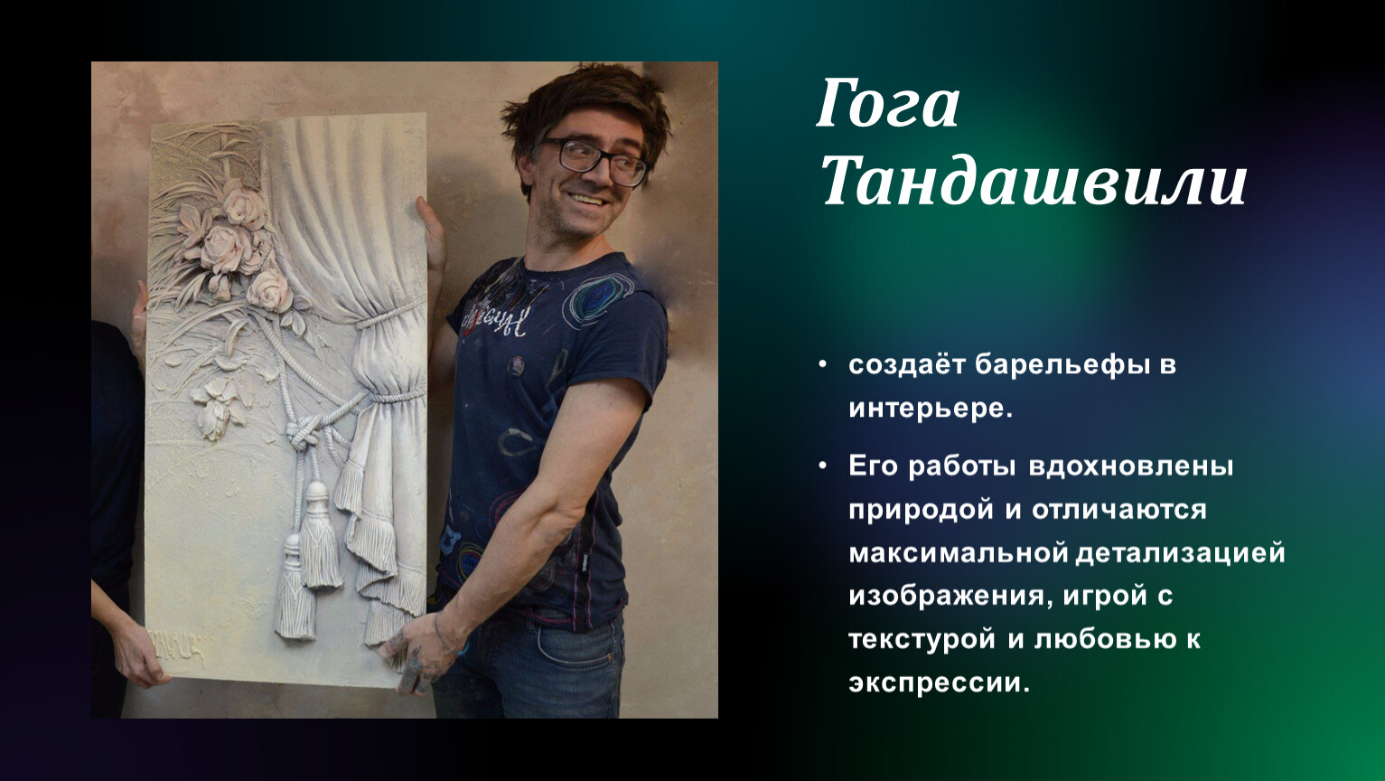 Его работы вдохновлены природой и отличаются максимальной детализацией изображения, игрой с текстурой и любовью к экспрессии.