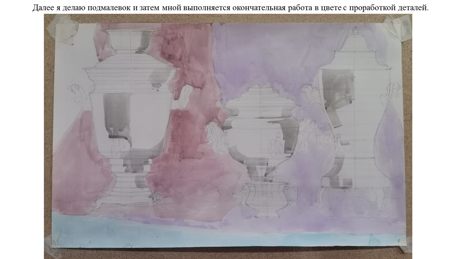 Далее я делаю подмалевок и затем мной выполняется окончательная работа в цвете с проработкой деталей.