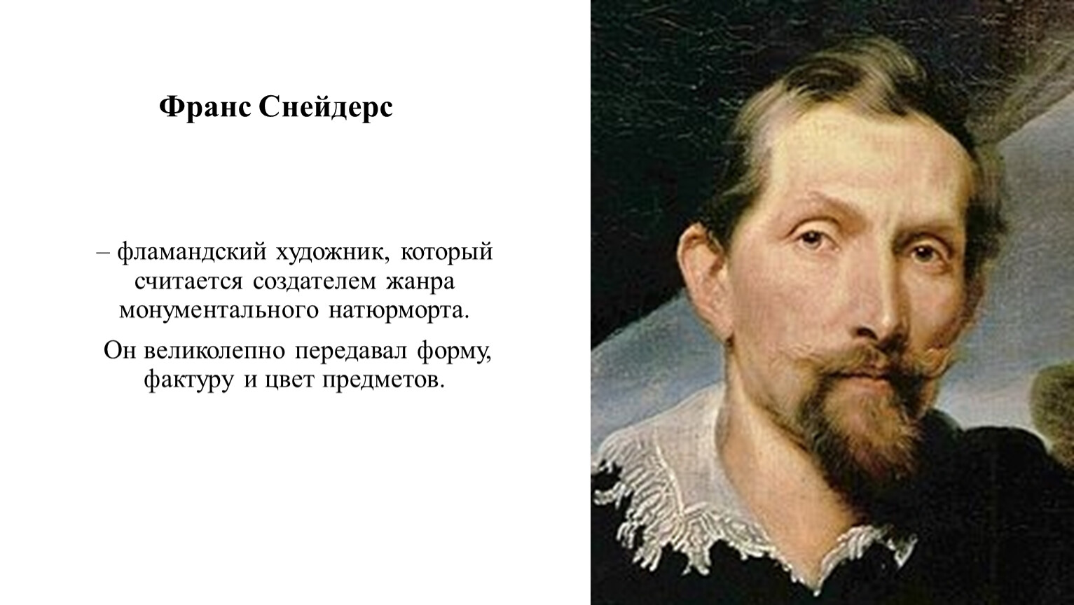 – фламандский художник, который считается создателем жанра монументального натюрморта.