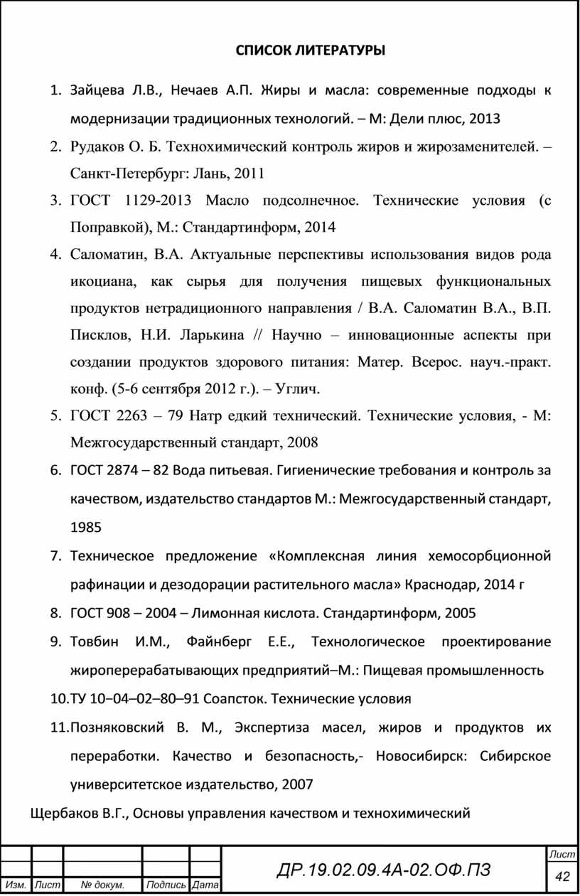 3. ГОСТ 1129-2013 Масло подсолнечное. Технические условия (с Поправкой), М.: Стандартинформ, 2014