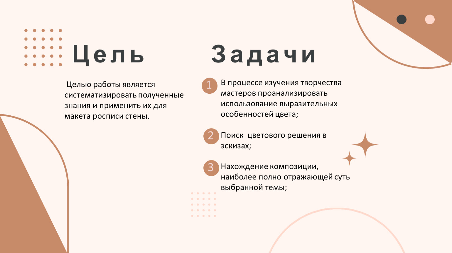 Целью работы является систематизировать полученные знания и применить их для макета росписи стены.