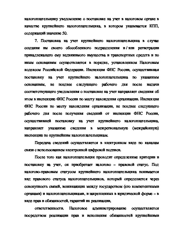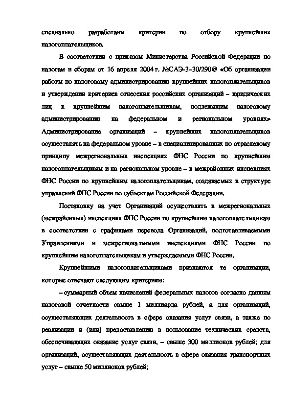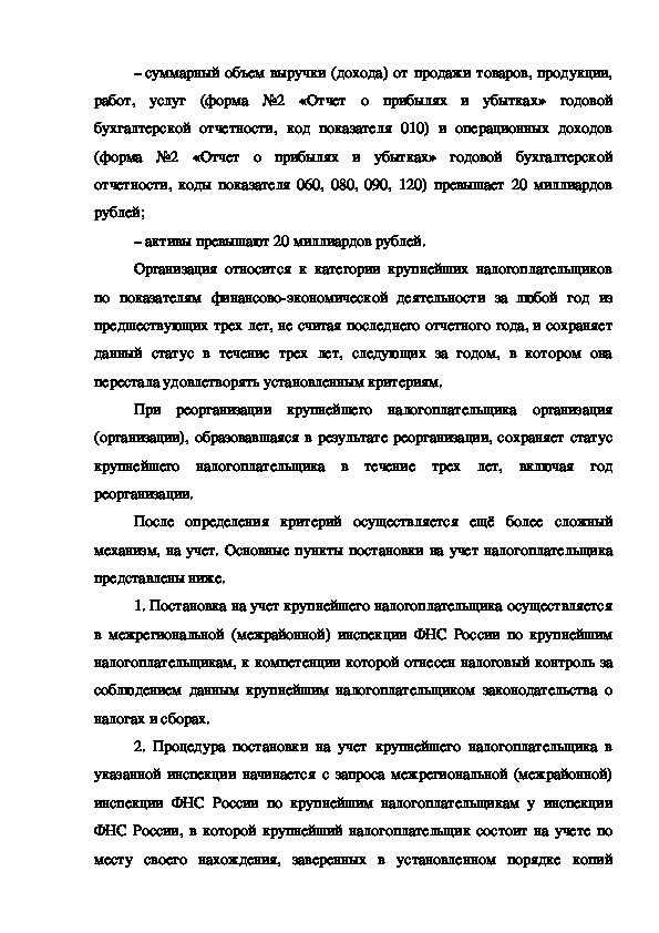 налоговых органов по вопросам учета крупнейших налогоплательщиков –