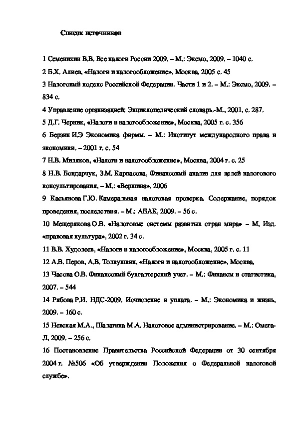 1 Семенихин В.В. Все налоги России 2009. – М.: Эксмо, 2009. – 1040 с.