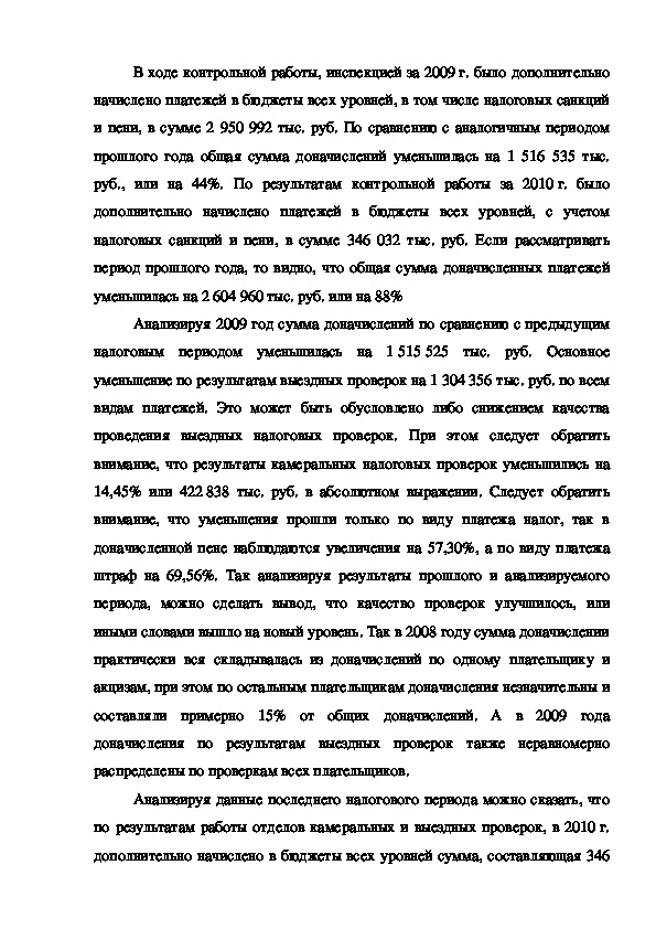 Рассмотрев на примере анализ контрольной работы Межрайонной инспекции