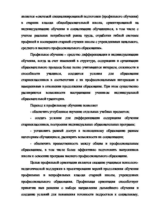 профиль) и многопрофильным (организовать несколько профилей обучения).