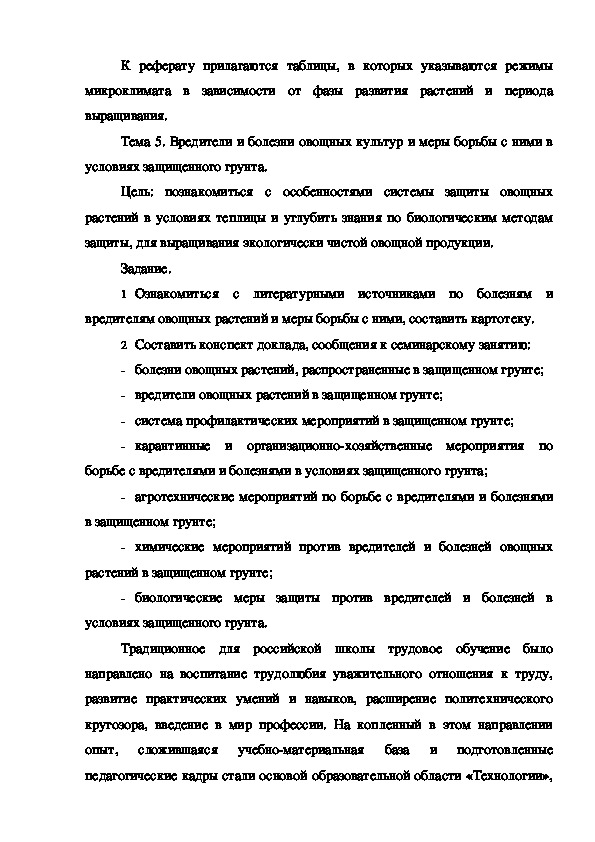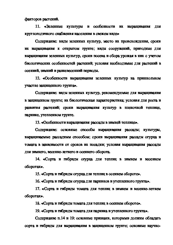 формирования у школьников знаний, умений и навыков по основам аграрной