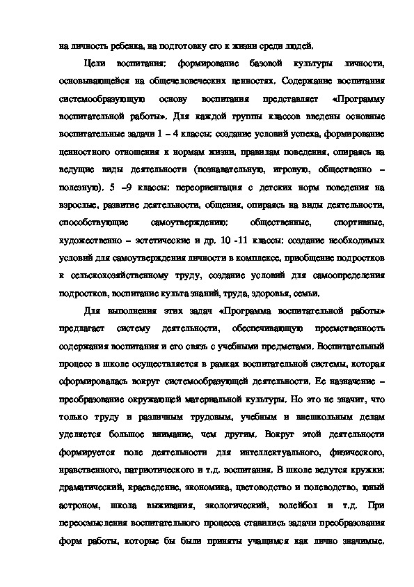 развития аграрного сектора, формирование нового мышления у учащихся.