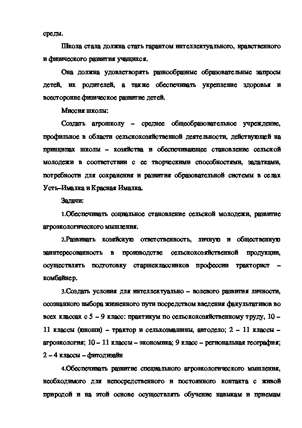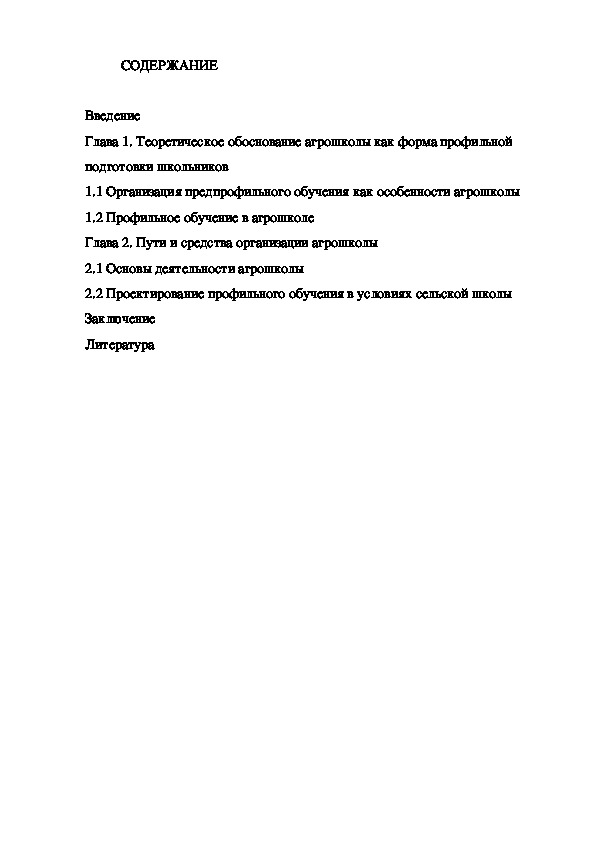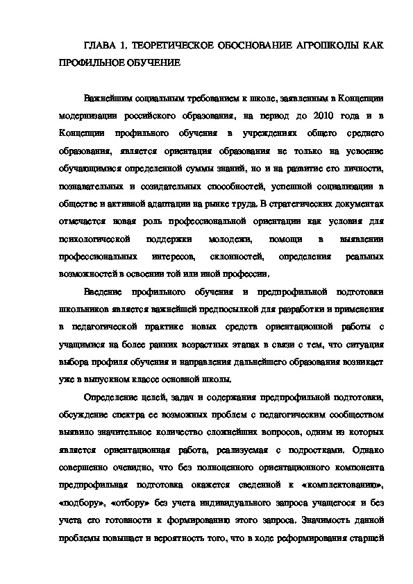 Глава 1. Теоретическое обоснование агрошколы как форма профильной